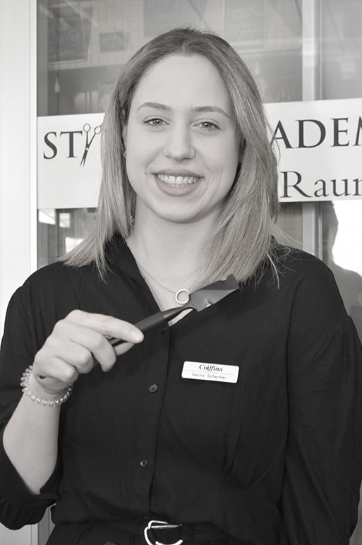Absolventin der Coiffina Styling Academy. In Ausbildung unter stetiger Qualitätskontrolle.